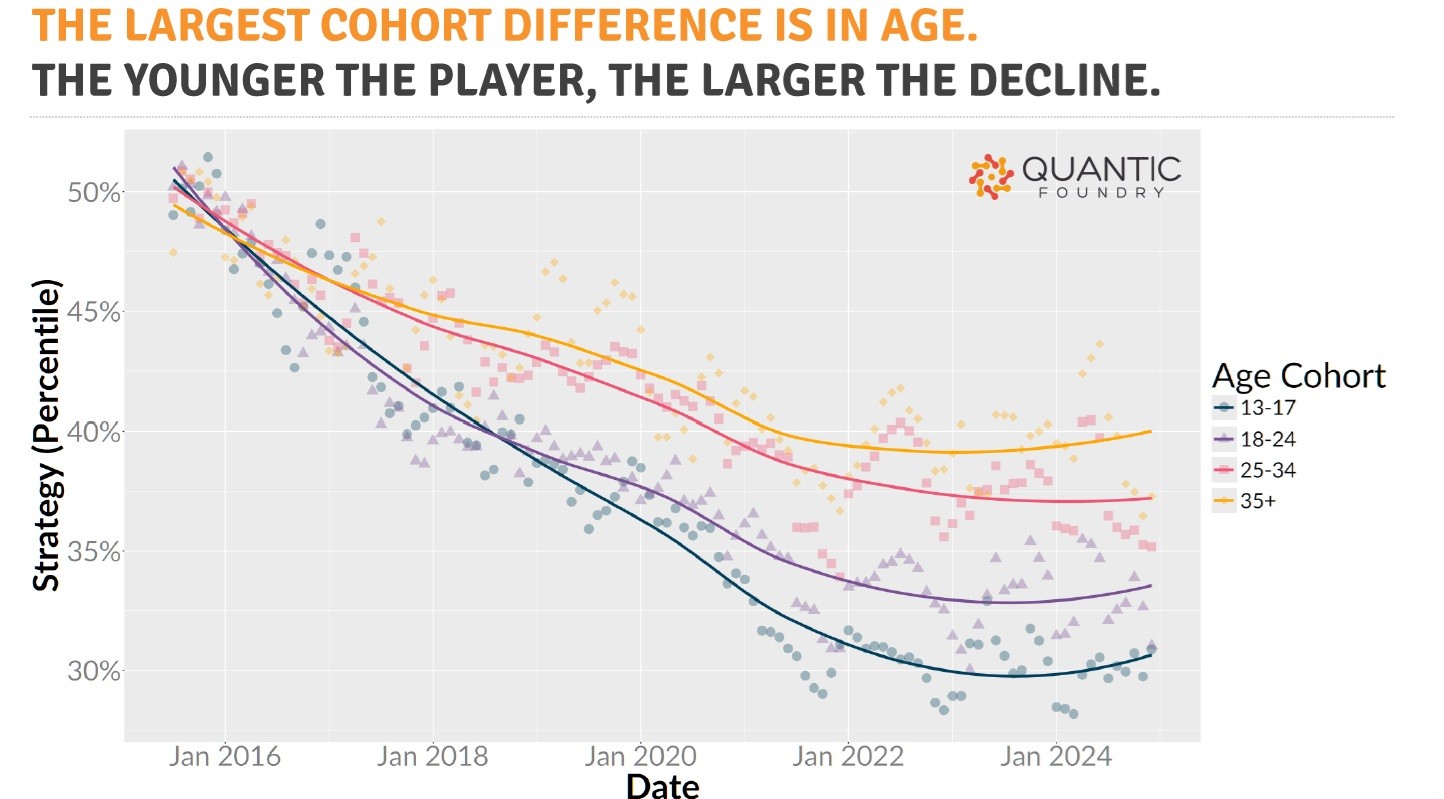 For the record, Yee’s 2025 GDC presentation included the following slide that illustrated the relative drop in strategy-focused interest among the GMM’s youngest cohorts.